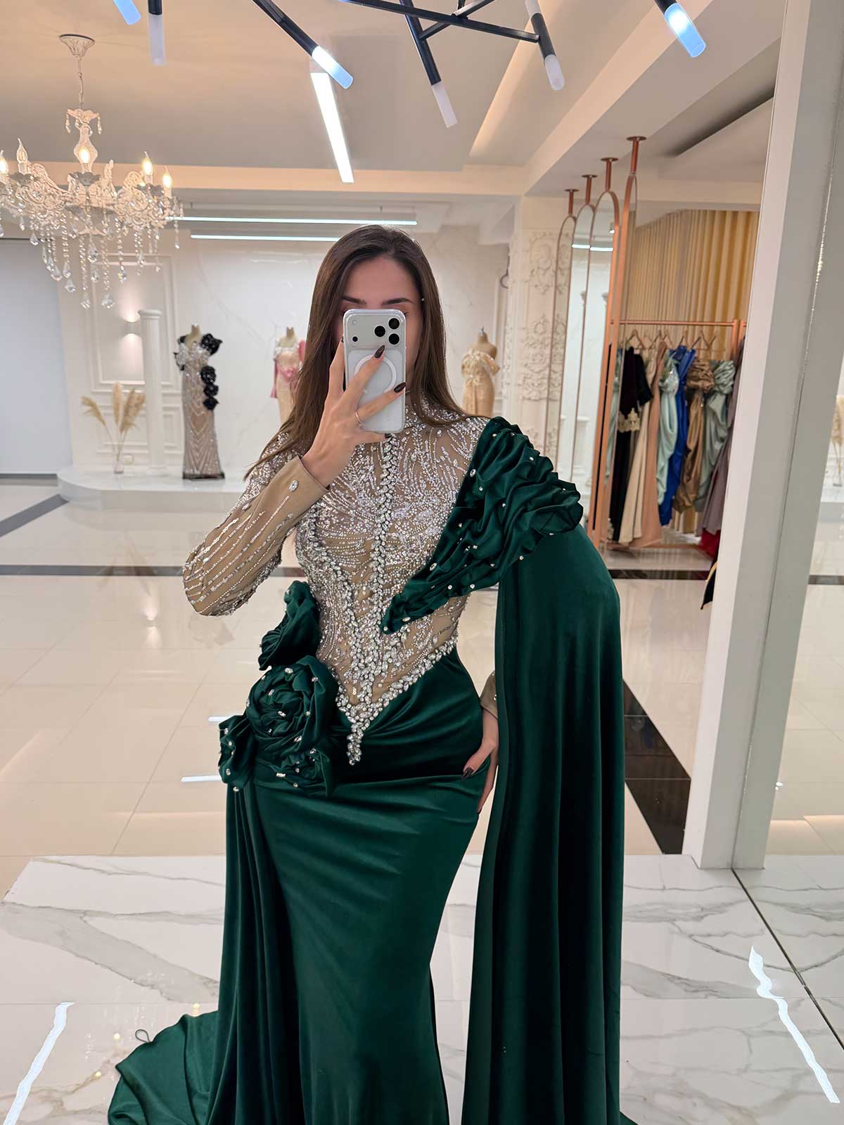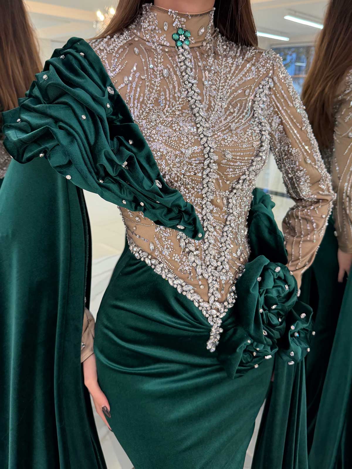 - Off shoulder velvet design